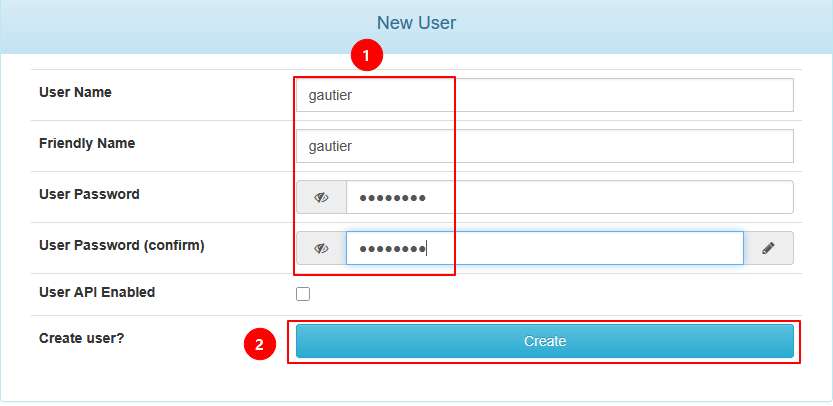 Aller dans le menu User puis cliquer sur Create New User.