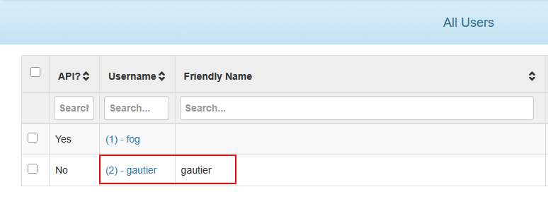 Une fois créée, l’utilisateur doit apparaitre dans la page All Users.