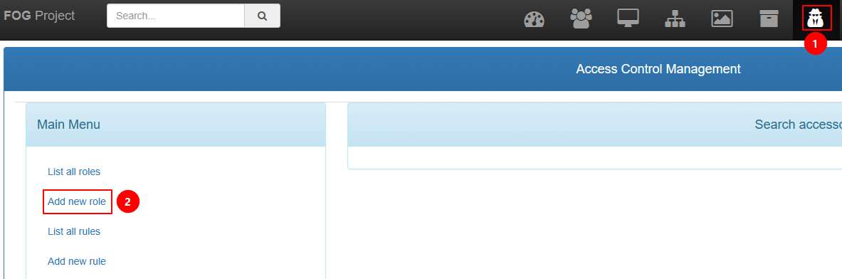 Cliquer sur l’icone de Access Control dans la barre d’outils, puis cliquer sur Add new role.
