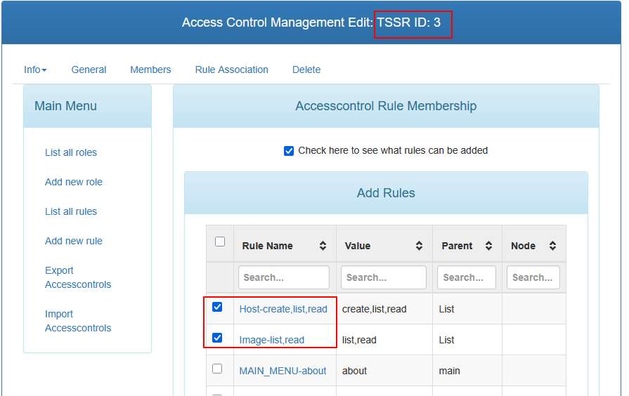Pour associer les règles aux rôles, aller dans List all roles, sélectionner le rôle concerné, cocher les règles créées précédemment puis cliquer sur ajouter.