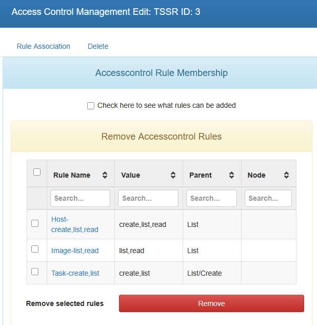 Type : Host Parent : List Nœud parent : laisser vide ou tapez root Valeur de la règle : create,list,read