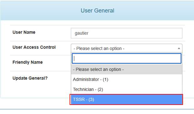 Aller dans Users > List all Users, sélectionner l’utilisateur à appliquer le rôle, puis dans le champ User Access Control sélectionner le rôle à assigner et cliquer sur Update.