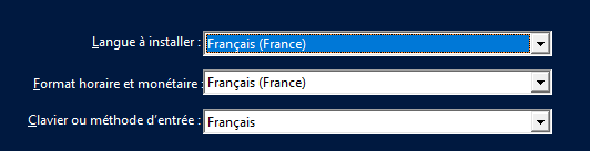 - Sélectionner la langue, le format horaire et la méthode d’entrée, puis cliquer sur « Suivant »