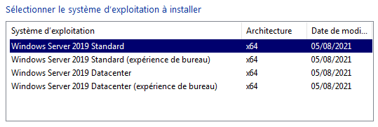 - Sélectionner l’édition de Windows Server à installer, puis cliquer sur « Suivant »