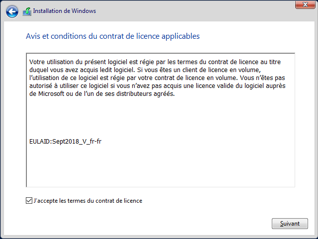 - Accepter le contrat de licence, puis cliquer sur « Suivant »