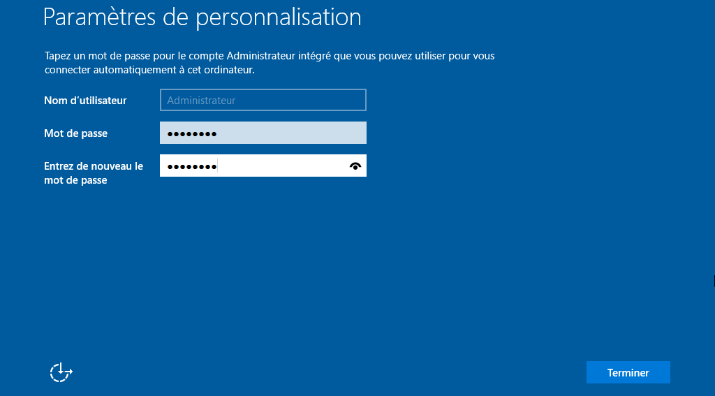 - Définir un mot de passe pour le compte Administrateur, puis terminer l’installation