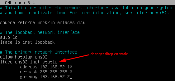 interfaces. Ouvrir le fichier avec Nano :