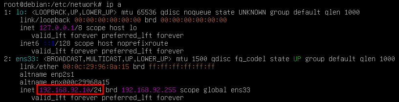 systemctl restart networkingVérifier l’adresse appliquée :