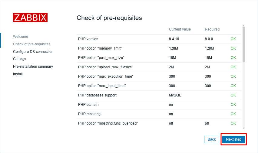 systemctl restart zabbix-server zabbix-agent2 nginx php8.4-fpm