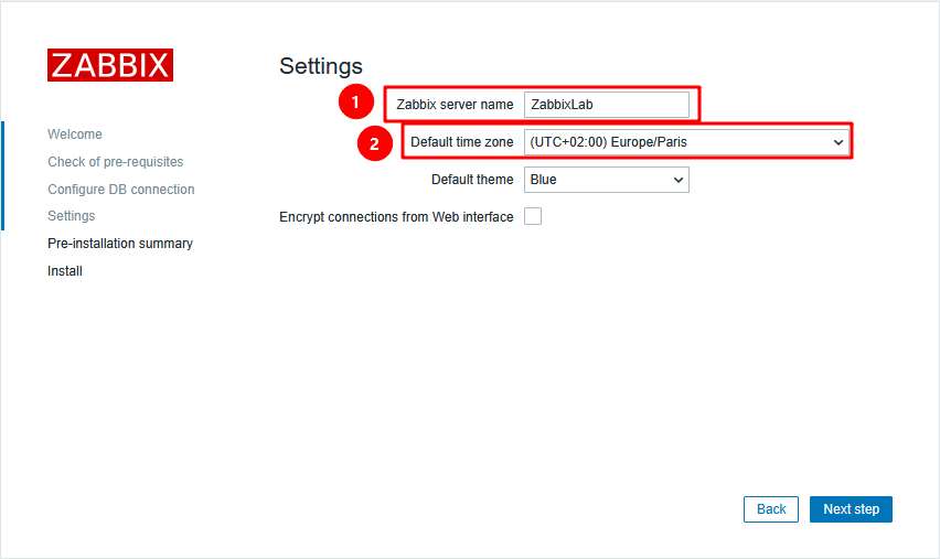 Renseigner un nom de serveur et définir le fuseau horraire.