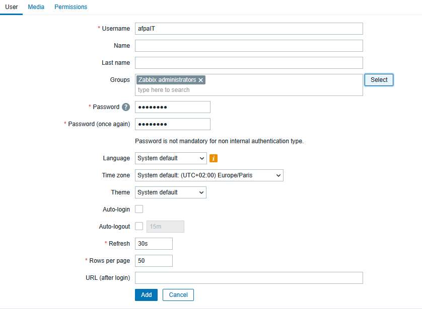 Définir un nom d’utilisateur, un mot de passe et associer un groupe.