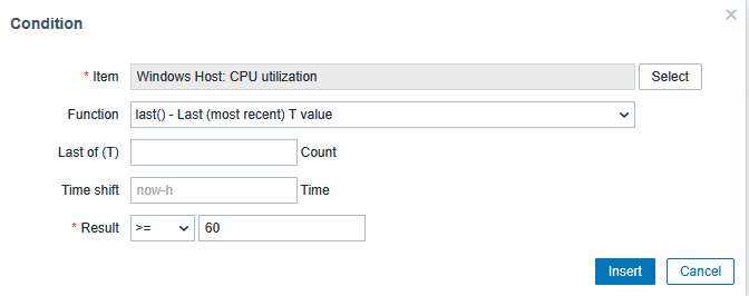 Sur la page des déclencheur d’un hôte, cliquer sur Create Trigger