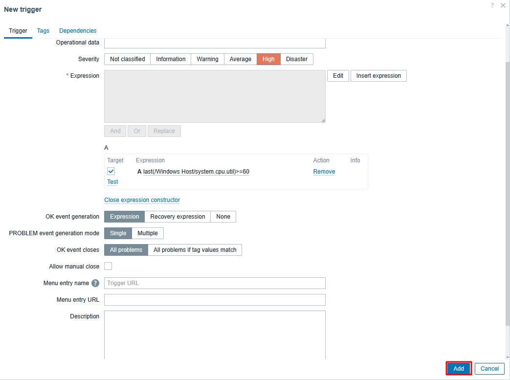 Une fois le déclencheur configuré, cliquer sur Add pour l’ajouter la liste des déclencheurs.